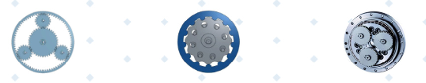 行星減速機(左)   擺線輪減速機(中)    RV 減速機(右)